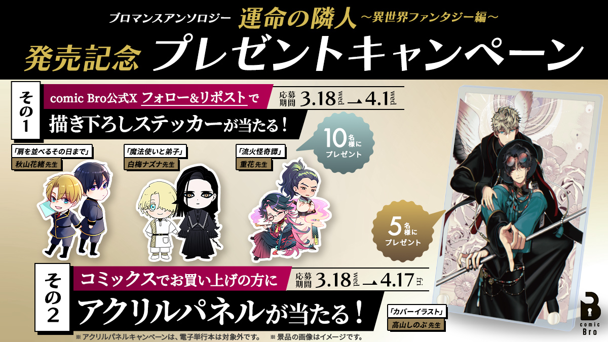 紙コミックをお買い上げの方を対象に、抽選で5名様にアクリルパネルをプレゼント!